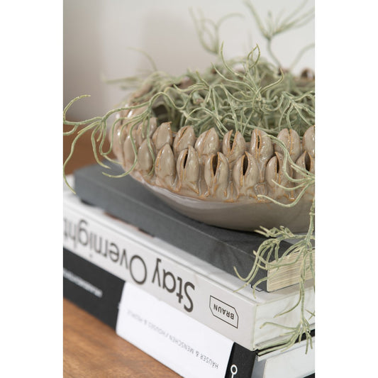 J-Line Flower Pot Pattern Low Ceramic Light Grey